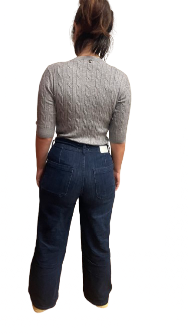 Ce petit pull gris allie douceur, féminité et raffinement. Son motif torsadé apporte une touche classique et intemporelle, tandis que son col rond délicatement décoré de petites perles illumine la silhouette avec subtilité.