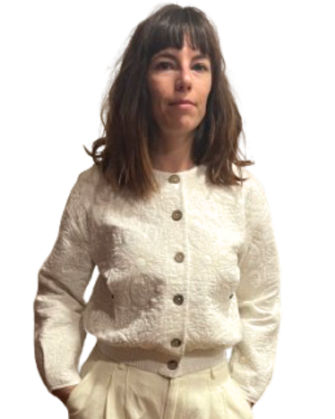 La veste Botticcelli réinvente l’élégance intemporelle avec une douceur moderne. Confectionnée dans un coton ivoire délicat, elle dévoile un motif texturé inspiré des codes classiques : une broderie ton sur ton subtile, raffinée, presque sculptée dans la matière.